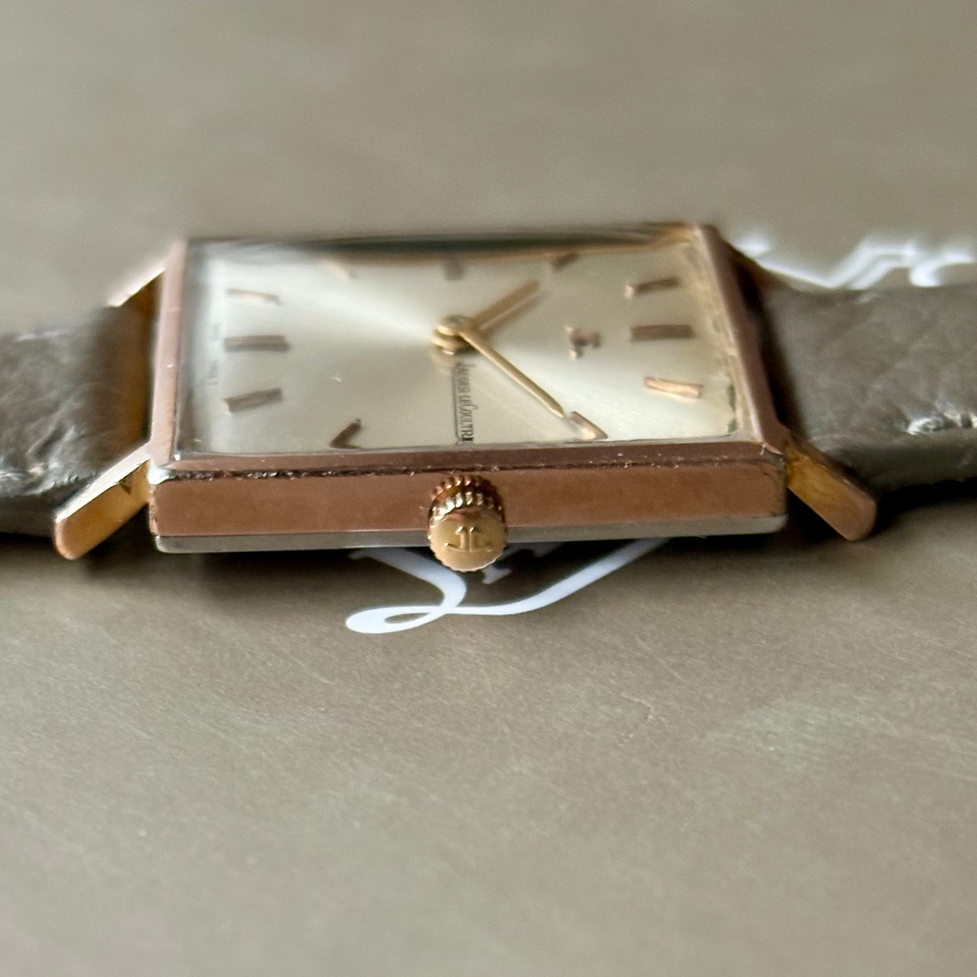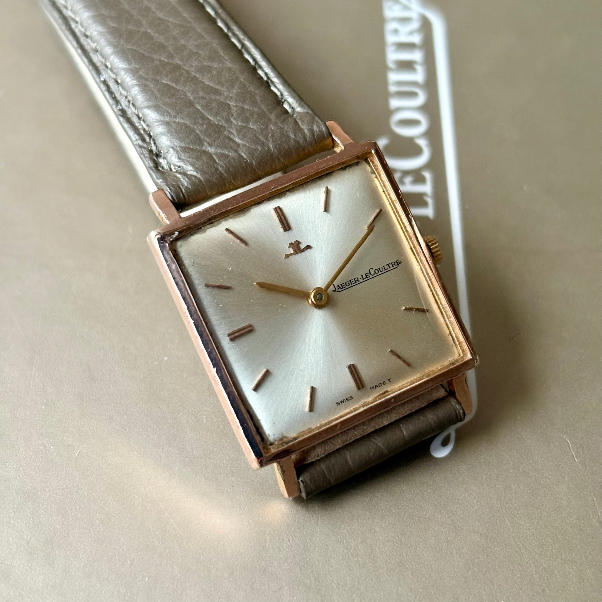 Découvrez une élégante Jaeger-LeCoultre des années 1960, un modèle emblématique au design raffiné. Son boîtier carré et son cadran soleilé capturent l’esthétique classique et prestigieuse de la manufacture.